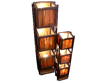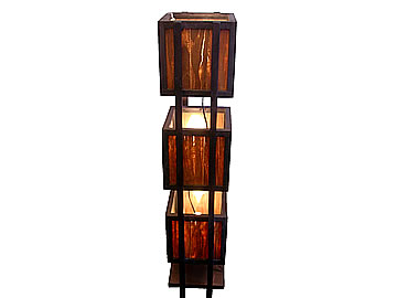 キューブが3つ連なったライトです。シェード部分は木の皮を使用し、明かりをつけると機の木目がうかびあがります。モダンなデザインなので、お部屋を問わず馴染んでいただけるライトです。