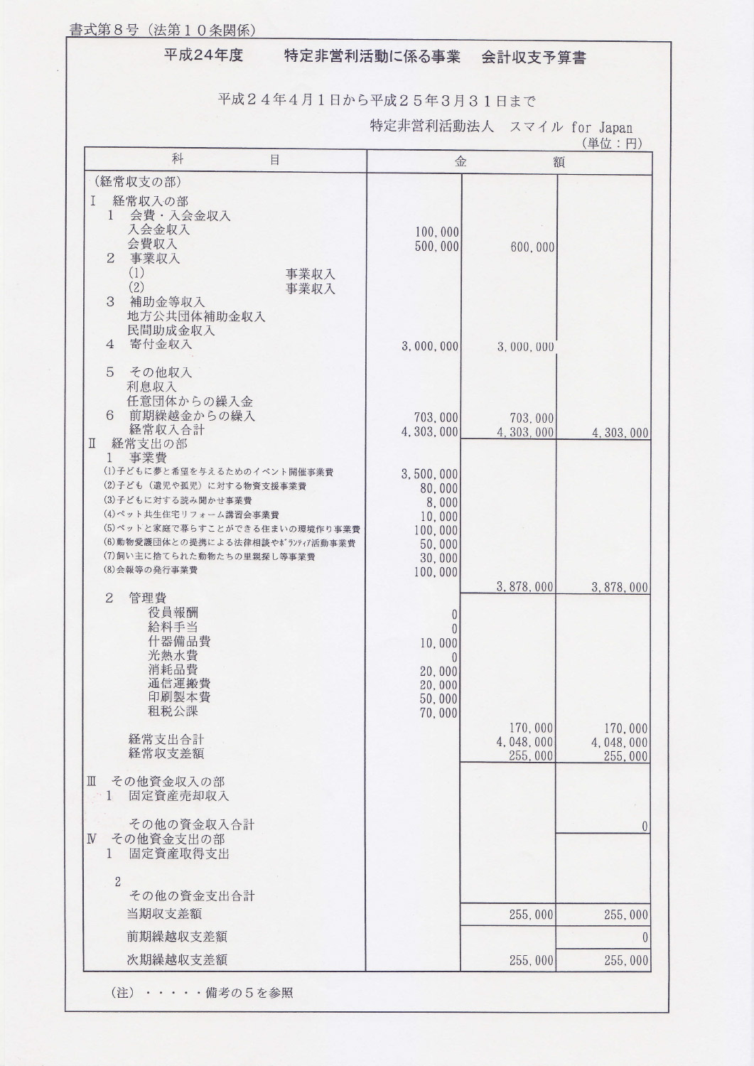 平成24年度収支報告書