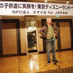 葛西臨海公園・東京ディズニーランド2泊3日(2012.3.25) 2012/03/26 2012年3月25日~27日には、気仙沼の子供たち100名を、葛西臨海公園と東京ディズニーランドへ、2泊3日で招待いたしました。 共有:クリックして Twitter で共有 (新しいウィンドウで開きます)Facebook で共有するにはクリックしてください (新しいウィンドウで開きます) 関連