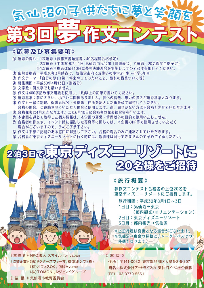 「第3回夢作文コンテスト」の詳細が決定いたしました。